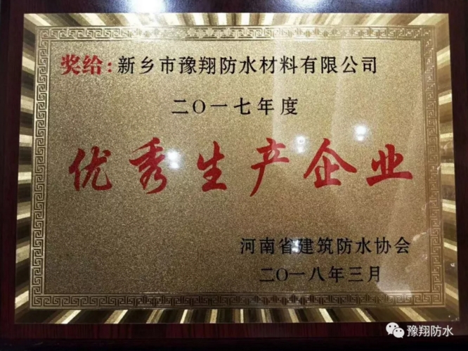 热烈祝贺我司被<河南省建筑防水产品质量提升大会>评为:2017年度优秀生产企业奖。