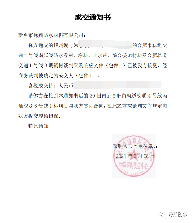 9198汇彩网 近日,豫翔防水的***批防水卷材进入中铁隧道局合肥市轨道交通4号线南延项目的施工现场。这是2021年***个中标项目,公司尤其重视,在质量、技术等方面精益求精,层层把关,我们秉承“以质量求生存,以信誉求发展”的核心理念,严格执行国家防水质量标准。